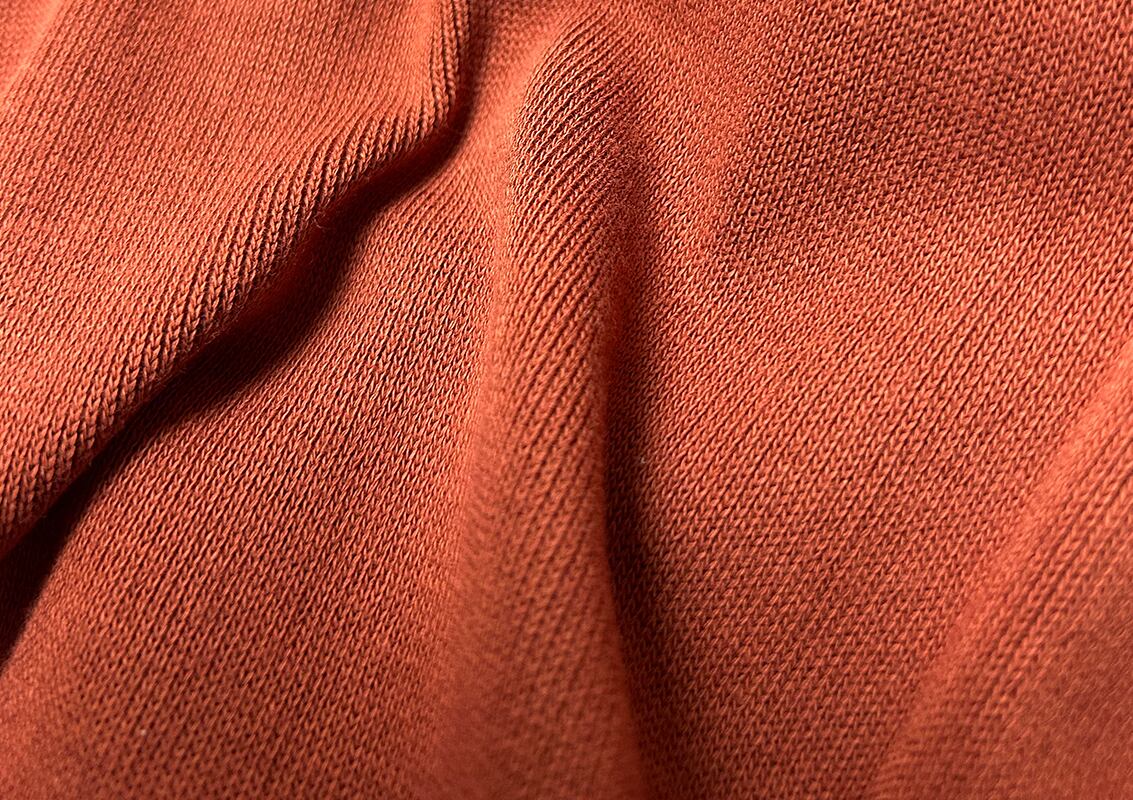 袖先、裾は9cm幅ダブルの1×1リブになっており、ニットソーですがスウェット感覚で着用していただけます。