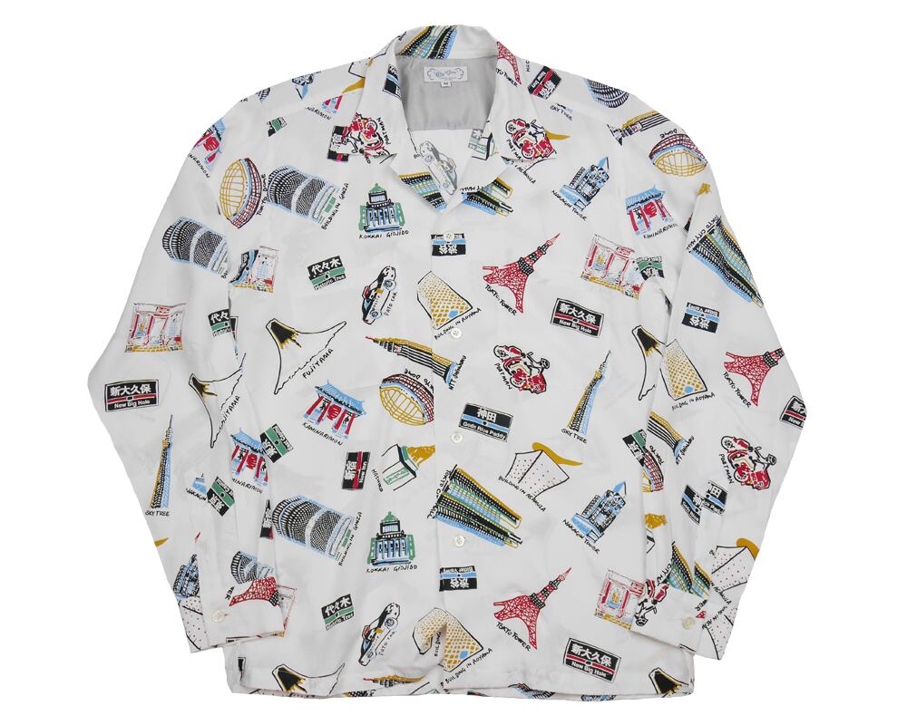 東京をテーマに、独自の目線と表現で描いていただいた、オリジナル柄アロハの長袖です。