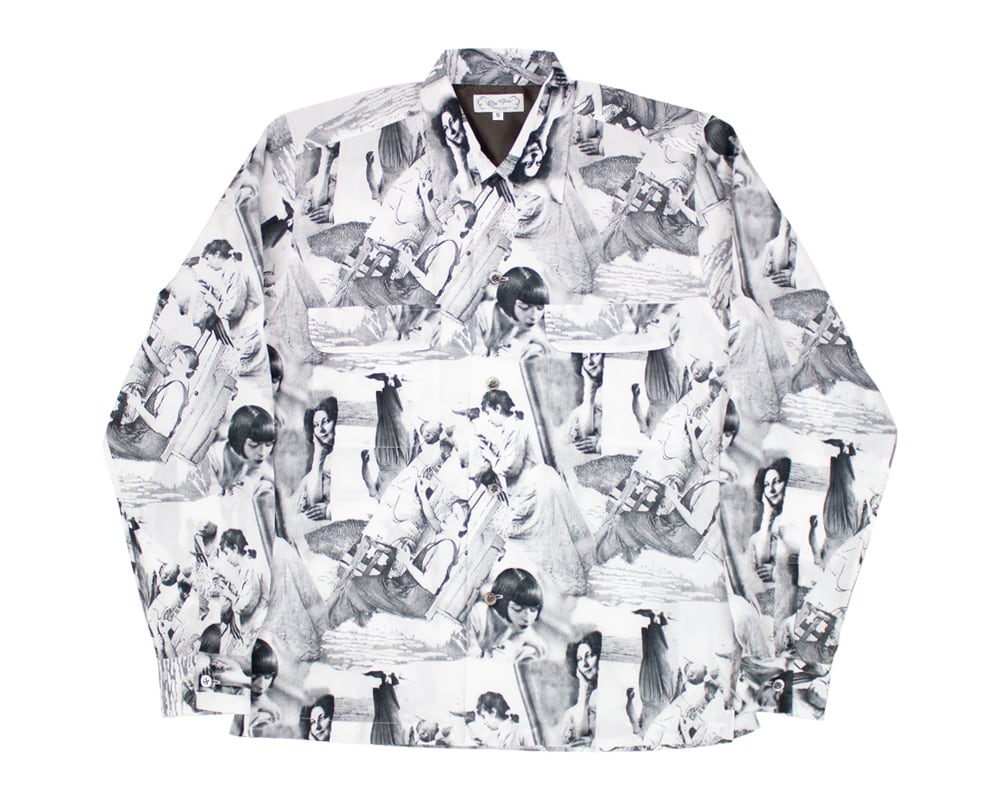 orglory オアグローリー オープンカラー レギュラーカラー 長袖 コラージュ 柄シャツ 総柄