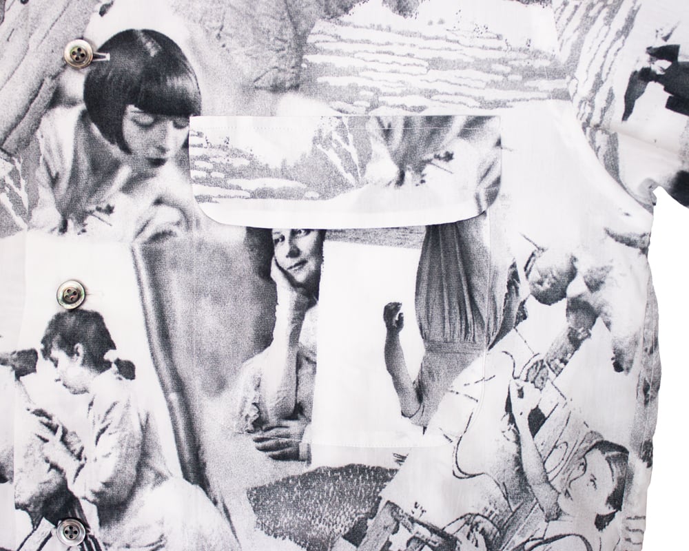 ビンテージアロハにもみられるピクチャープリントの技法を使い、芸術にまつわる女性を