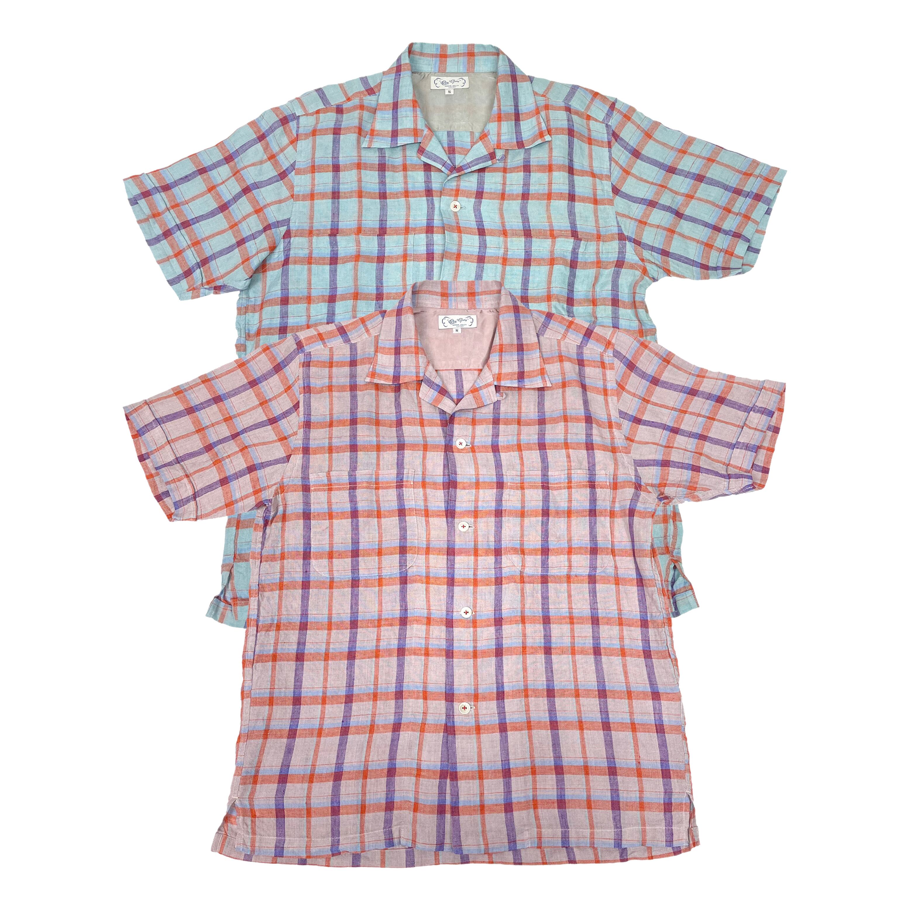 orglory ORGLORY jingumae JINGUMAE rising shirts オアグローリー 国産 40/1リネン チェック オープンカラーシャツ 日出ずる国 ライジングサン