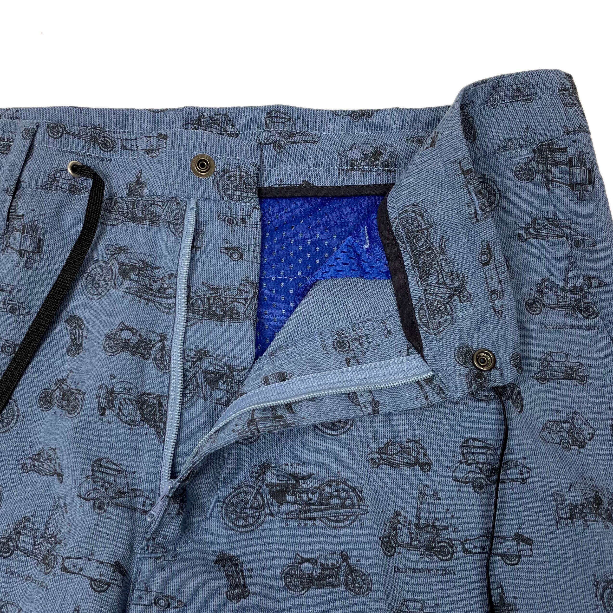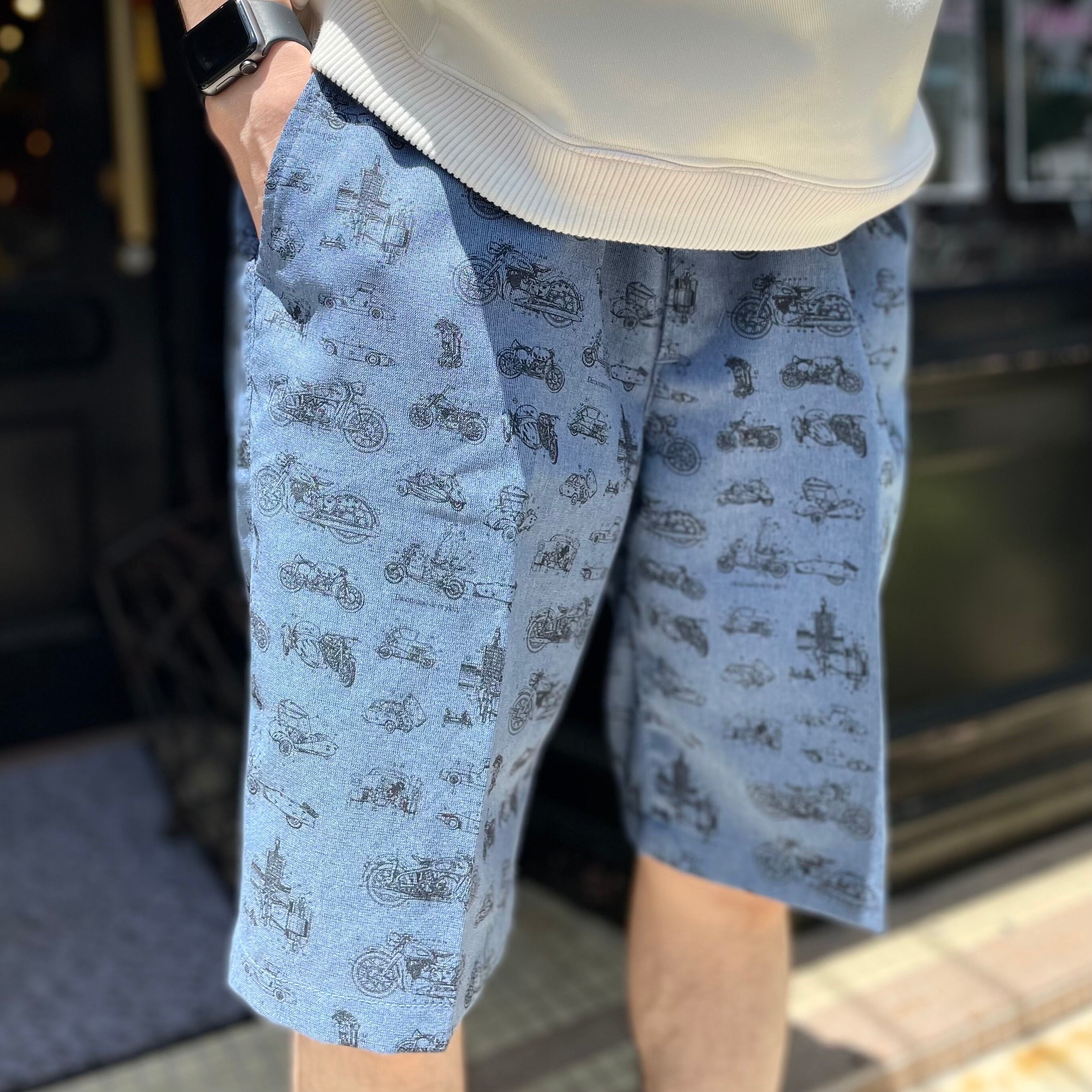 よく見ると車やバイク、モーターなどがお洒落なタッチで描かれた遊び心満載のショーツです!