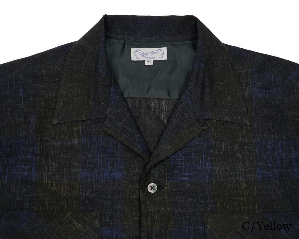 オアグローリー orglory 柄シャツ オープンカラー シャツ 墨汁染め チェック 麻 アロハシャツ