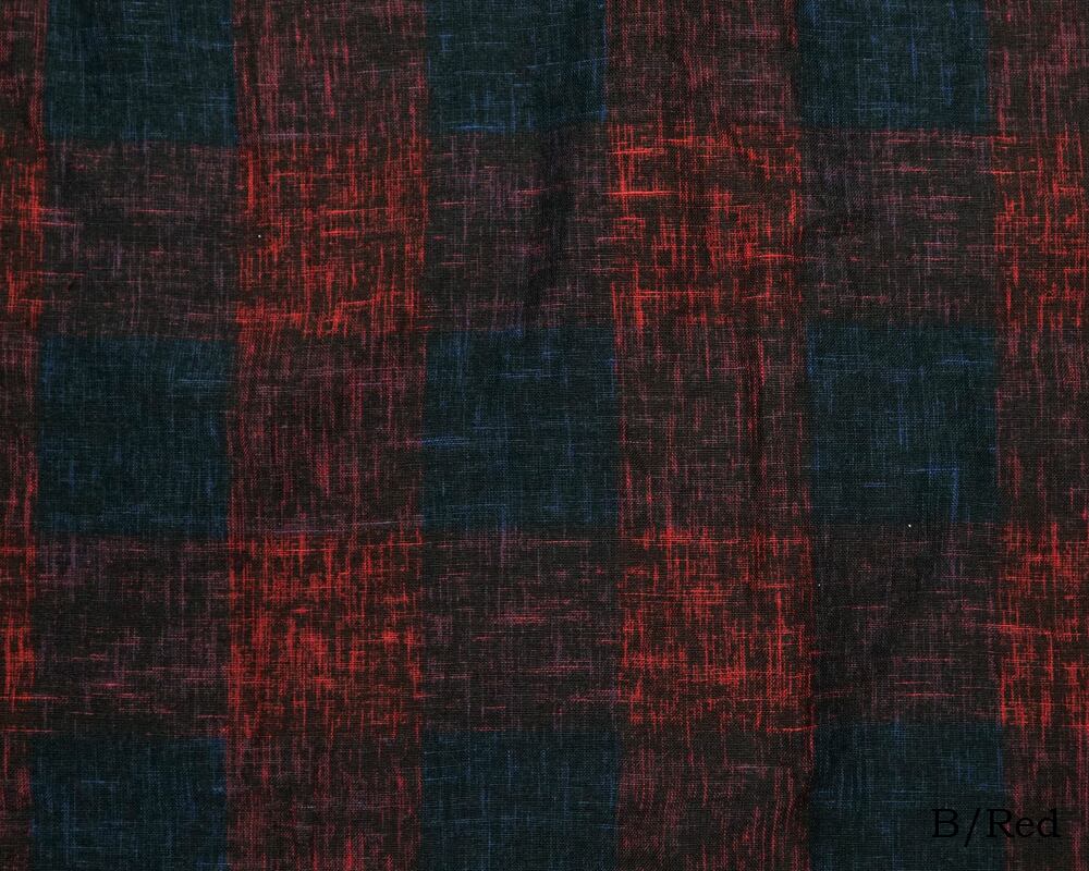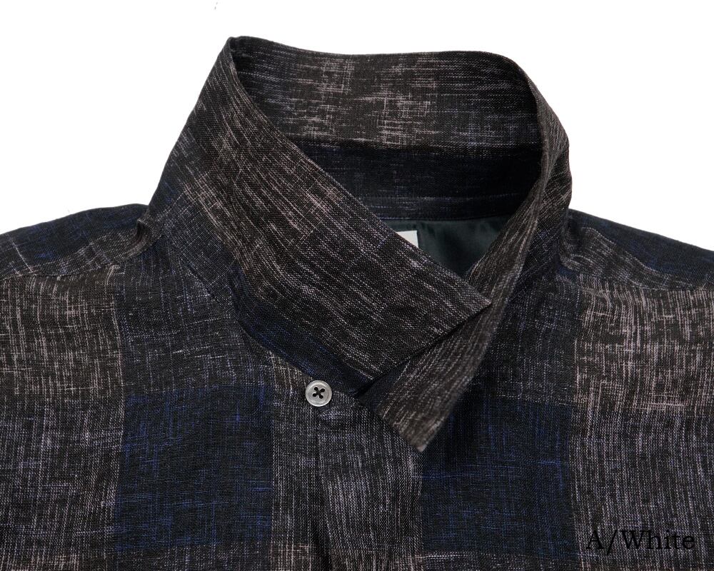 麻100%の大柄ブロックチェックに墨汁染めを施した新型のオープンシャツになります。