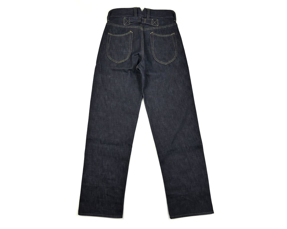 クラシックな5ポケットスタイルですが、独特のカーブしたシェイプとハイバックVスリット+シンチバックといったディテールが特徴的です。